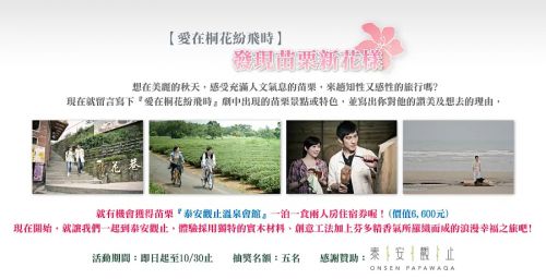 | 分集剧情 | 爱在桐花纷飞时 第1集 剧情介绍北京一个巷弄里传出了呼哈的打斗声,原来是一间跆拳道馆,小雨和郝大风等人在练跆拳道。这时小雨突然接到常玲的电话说要跳楼,热心的小雨马上赶到现场,一看常玲半醉的坐在楼顶边,小雨偷偷走近,想要拉下常玲时,一个不小心踩到常玲丢在地上的空酒瓶,直接撞上常玲,把常玲撞的脚骨骨折。所幸常玲只是骨折而已。小雨在医院安慰常玲,结果最後答应常玲去趟台湾把郑擎光找回来好好谈谈,另一方面顺便理解一下苗栗的旅游资源,写本旅游书。 小雨一到了苗栗三义,进了便利商店想买个饮料,竟遇到抢案。小雨一时侠义心起,一个飞踢吓跑歹徒。热心的小雨跟著追出,却错认了穿著同样颜色衣服路过的郑擎天就是歹徒,狠狠的给擎天一脚,并与巡守副队长孔汉吉将擎天抓到。小雨後来发现自己认错人,正想跟擎天道歉时,仔细一看擎天竟跟擎光长相一模一样,小雨马上兴师问罪,擎天一听就知道又是哥哥惹的祸,忙跟小雨说认错人。小雨不信,硬要擎天给交代,擎天不理迳自离开。巧合的是,小雨拉著行李找了一家特色民宿要投宿,一进门就发现老板交是擎天,擎天原本觉得麻箛不想让小雨住宿,适时出现爱做生意的奶奶马上欢迎小雨入住,擎天无可奈何。当晚,小雨跟常玲报告常玲提醒小雨小心,因为郑擎光非常狡猾,极可能骗人,所以要小雨找机会,确认他的身份。 爱在桐花纷飞时 第1集 剧情介绍北京一个巷弄里传出了呼哈的打斗声,原来是一间跆拳道馆,小雨和郝大风等人在练跆拳道。这时小雨突然接到常玲的电话说要跳楼,热心的小雨马上赶到现场,一看常玲半醉的坐在楼顶边,小雨偷偷走近,想要拉下常玲时,一个不小心踩到常玲丢在地上的空酒瓶,直接撞上常玲,把常玲撞的脚骨骨折。所幸常玲只是骨折而已。小雨在医院安慰常玲,结果最後答应常玲去趟台湾把郑擎光找回来好好谈谈,另一方面顺便理解一下苗栗的旅游资源,写本旅游书。 小雨一到了苗栗三义,进了便利商店想买个饮料,竟遇到抢案。小雨一时侠义心起,一个飞踢吓跑歹徒。热心的小雨跟著追出,却错认了穿著同样颜色衣服路过的郑擎天就是歹徒,狠狠的给擎天一脚,并与巡守副队长孔汉吉将擎天抓到。小雨後来发现自己认错人,正想跟擎天道歉时,仔细一看擎天竟跟擎光长相一模一样,小雨马上兴师问罪,擎天一听就知道又是哥哥惹的祸,忙跟小雨说认错人。小雨不信,硬要擎天给交代,擎天不理迳自离开。巧合的是,小雨拉著行李找了一家特色民宿要投宿,一进门就发现老板交是擎天,擎天原本觉得麻箛不想让小雨住宿,适时出现爱做生意的奶奶马上欢迎小雨入住,擎天无可奈何。当晚,小雨跟常玲报告常玲提醒小雨小心,因为郑擎光非常狡猾,极可能骗人,所以要小雨找机会,确认他的身份。 爱在桐花纷飞时 第2集 剧情介绍翌日,小雨入住的消息马上传到喜欢擎天多年李村妹的耳里。村妹以为小雨怀了擎天小孩,急着去问清真相,结果失神出了小车祸。担任护士的好友郭承美边帮村妹擦药边听村妹说八卦,内心也是一惊,因为她跟村妹一样一直喜欢着擎天,不同的是她从没让别人知道。 一早起床的小雨看见擎天就对质常玲的事情,一个不小心坐上油漆未干的椅子,弄脏了新买的裤子。气的不想再待在苗栗,打道回府。好心的郑奶奶指点,叫车把小雨送到了胜兴车站,小雨呆坐了好久,才发现这个车站根本没有火车会来。不过这一趟倒也不是白走,她认识了在车站当义工的老站长孔松年,两人成了忘年之交。孔老先生看出小雨心里有事,暗示年青人做事不要太冲动,否则可能后悔一辈子,小雨听了有些心动。 擎天赶到胜兴车站,小雨以为擎天是来挽留她。不料擎天只是来送台胞证给她的,但小雨还是找了个借口留下,把行李丢给擎天,自己则是在附近逛了起来…小雨逛着逛着逛到了三义著名的木雕街,参观了木雕博物馆,发现有个木雕作品居然和北京家里的摆设出自同一个人的手笔。 包扎好伤口的村妹,为了要知己知彼,便假意邀请小雨到家里的餐馆吃饭喝酒,一探虚实。不疑有他的小雨大方答应,到村妹的店里跟村妹又吃又喝。酒过三巡,村妹告知小雨一个惊人的秘密,就是…擎天从小跟村妹就已经指腹为婚了! 另一边,擎天到医院去当义工,承美也特别加班帮忙。两人一起离开,边牵着脚踏车边聊,一路上最终承美还是忍不住问擎天关于小雨以及怀孕的事,擎天说明是擎光惹的祸,承美终于松口气。她一直很喜欢和擎天独处的时光,因为从小到大,不多话的擎天只愿意跟承美聊些内心话。 爱在桐花纷飞时 第3集 剧情介绍喝得半醉的小雨回到民宿后,向常玲报告行程,并且设计刚回家的郑擎天到自己房间和常玲通电脑视讯,常玲一看到擎天就大吵大闹,擎天无法说服小雨和常玲两人自己不是郑擎光,只好请小雨到自己房间看兄弟合照的老照片以资证明,却被老奶奶意外发现半夜三更小雨在擎天房里有说有笑,第二天忙找村妹求证。村妹一听更是着急,马上找好朋友孔汉吉帮忙,想办法把小雨赶出苗栗,孔汉吉口头答应,可是心里痛苦,因为自己暗恋村妹多年,村妹一直没感觉,承美知道此事,忙着也和村妹一起赶去擎天家一探究?。 小雨向擎天借脚踏车,擎天借给小雨一部老爷车,小雨试骑以后非常满意,不禁表演起单车特技来,结果当然是摔了一跤,擎天忙去拉小雨,两人摔在一起,此景又